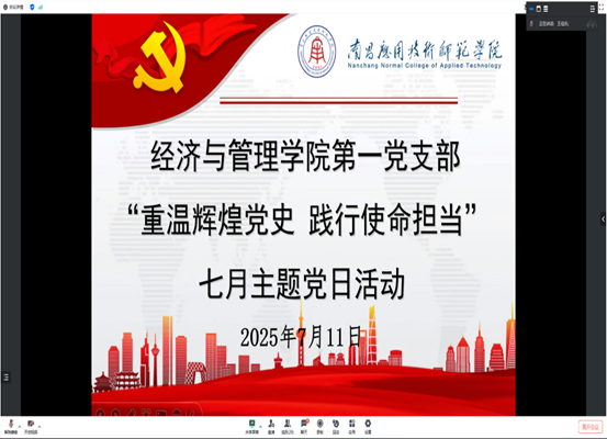 为进一步强化党员党性修养、增强凝聚力与战斗力,新葡的京官网第一党支部于7月11日在腾讯会议线上开展“重温辉煌党史,践行使命担当”七月主题党日活动,会议由第一党支部书记袁江波主持,支部党员参会。