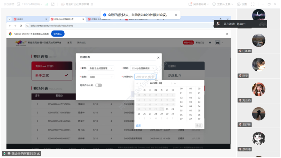 为助力参赛队员精准把握2025年江西省数智企业经营沙盘模拟大赛核心要点,夯实备赛基础,2025年8月22日晚上19:30,9227新葡的京集团开展线上赛前动员交流会。本次会议由数智财经系副主任肖丽丽主持,陈金叶老师担任主讲人,全体参赛队员参会,为即将到来的赛事吹响备战号角。